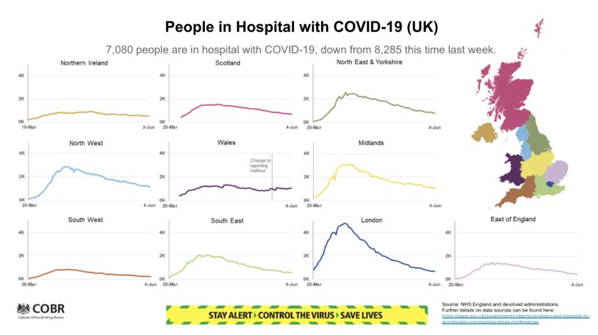 694 ασθενείς εισήχθησαν στο νοσοκομείο στις 3 Ιουνίου στην Αγγλία, αριθμός μειωμένος κατά 8% από την προηγούμενη εβδομάδα.